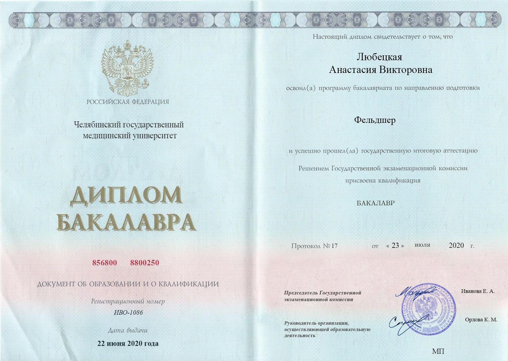 ВУЗ: Челябинский государственный медицинский университет, 2020 г.